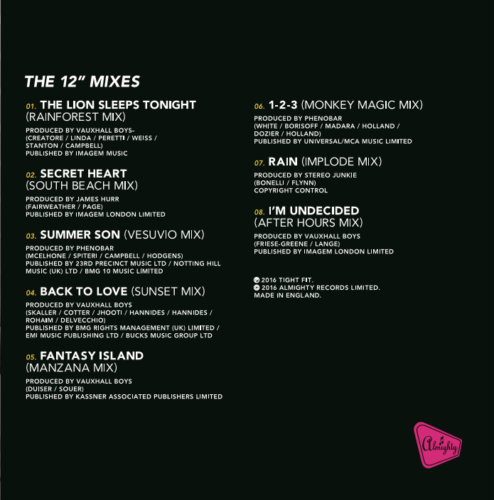 Don’t forget that as part of the new release of Tight Fit Together you can also get 12 inch mixes as well – for those of you that really like to party!